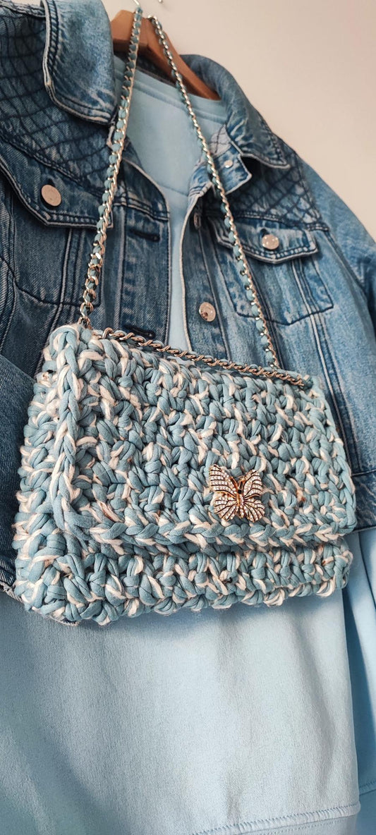 SAC BLEU JEAN FONCÉ/ANSE DORÉE