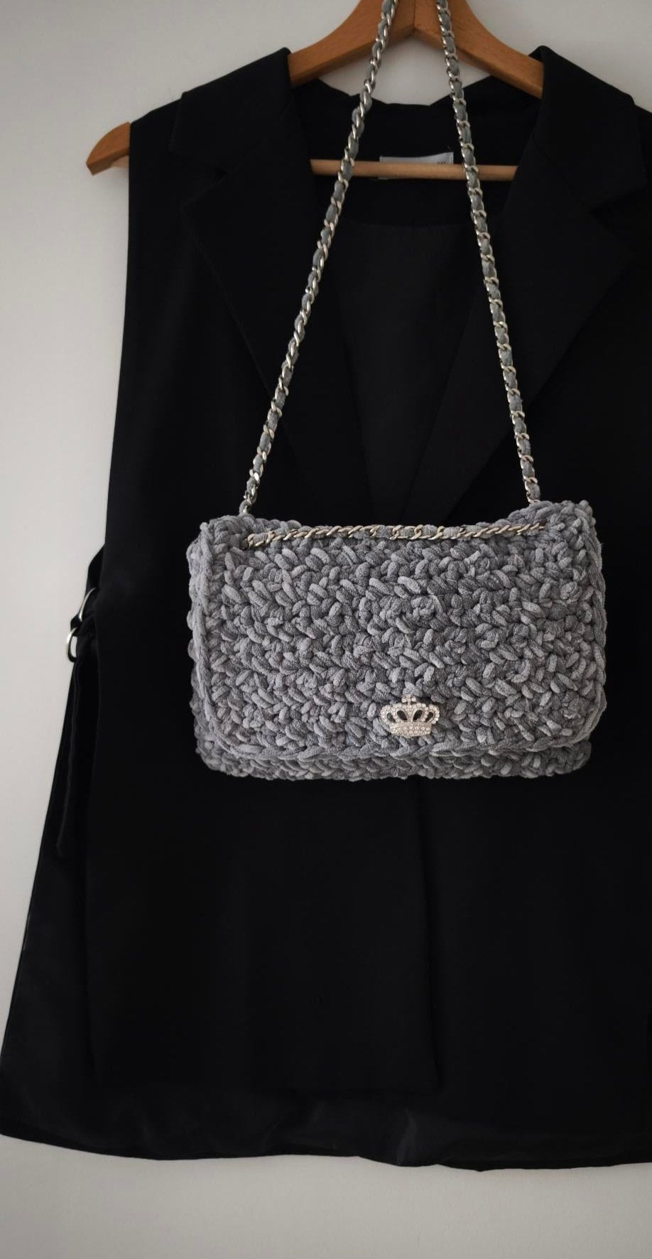 Une chaîne de 120cm en maille de haute qualité, s'adaptera à être portée à l'épaule ou en bandoulière, une pression aimantée permet la fermeture pratique du sac.