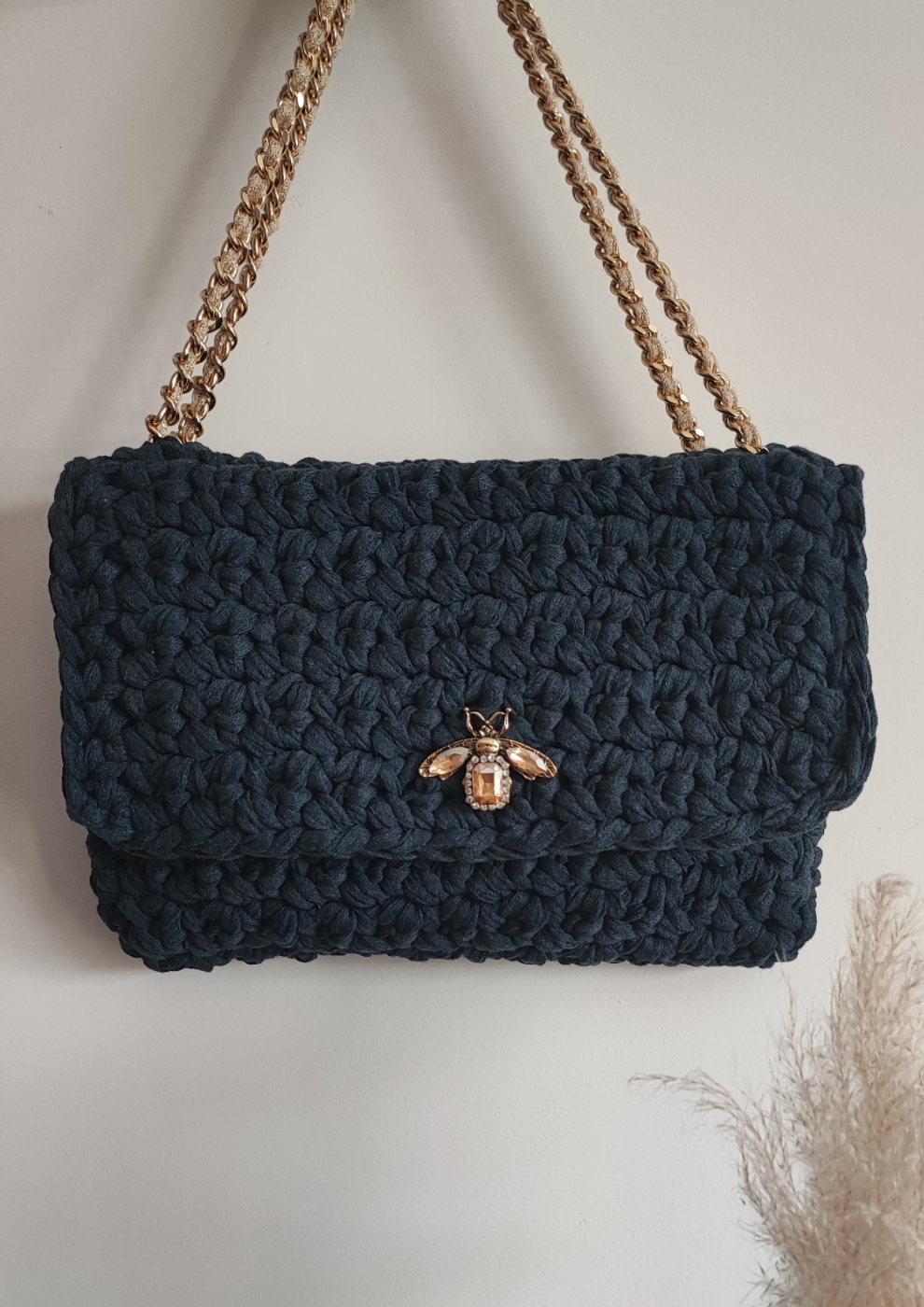 SAC BLEU JEAN FONCÉ/ANSE DORÉE