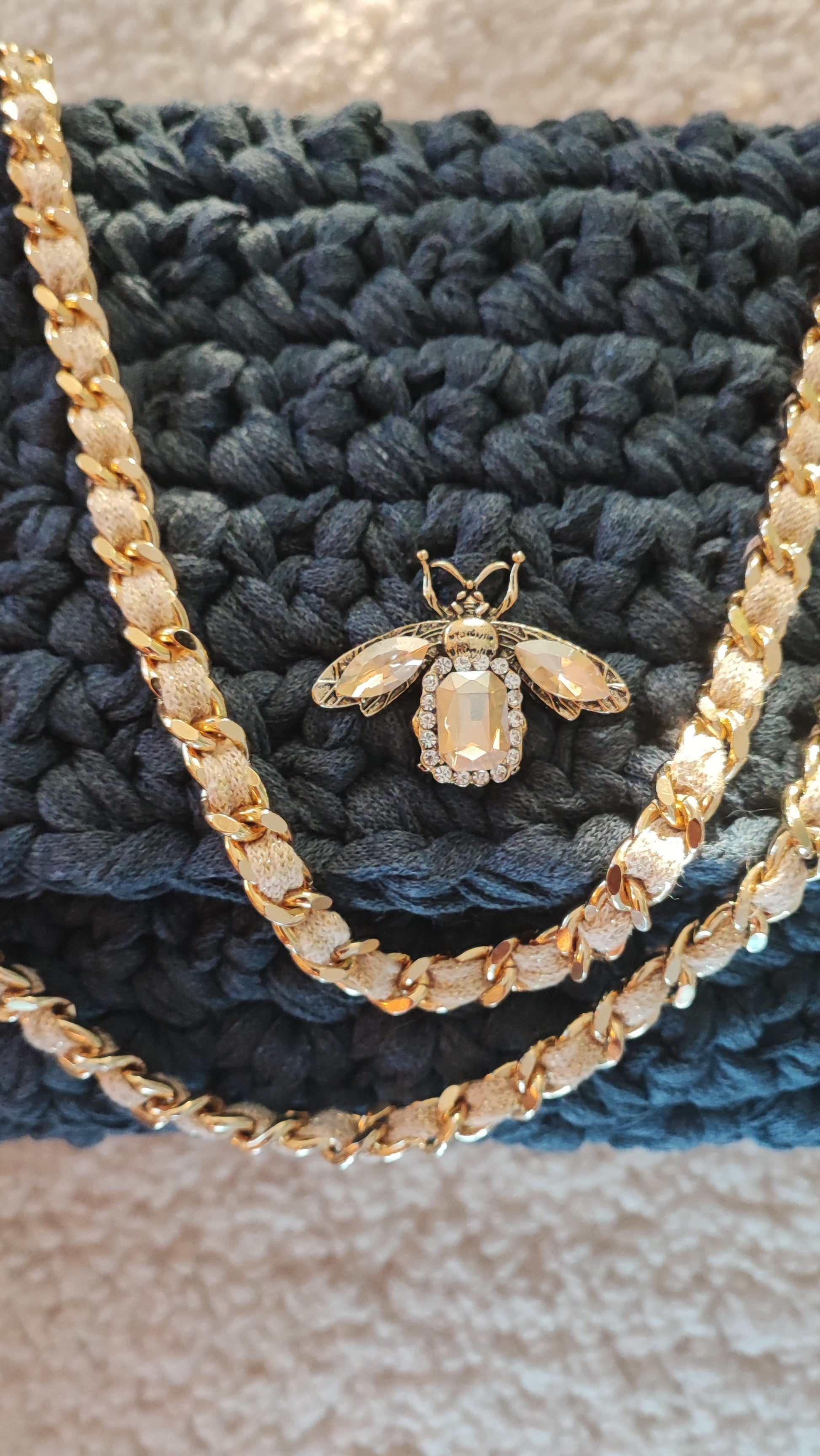 Une chaîne de 120cm en maille de haute qualité, s'adaptera à être portée à l'épaule ou en bandoulière, une pression aimantée permet la fermeture pratique du sac.
