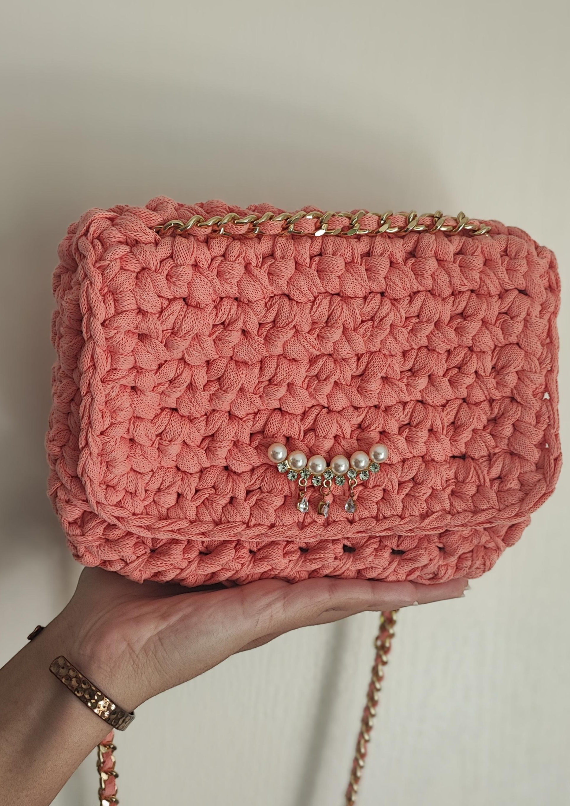 Une chaîne de 120cm en maille de haute qualité, s'adaptera à être portée à l'épaule ou en bandoulière, une pression aimantée permet la fermeture pratique du sac.