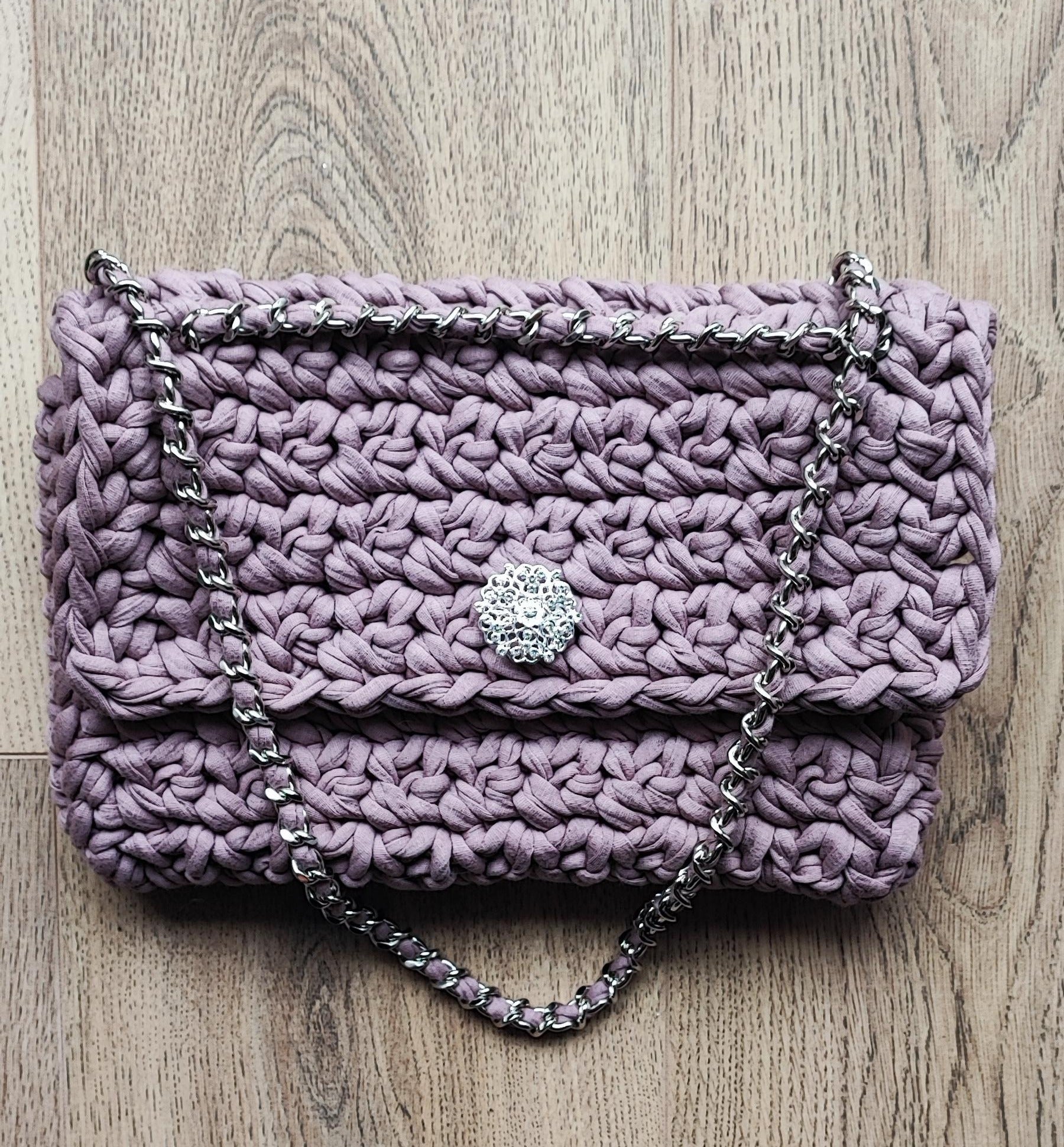 Une chaîne de 120cm en maille de haute qualité, s'adaptera à être portée à l'épaule ou en bandoulière, une pression aimantée permet la fermeture pratique du sac.